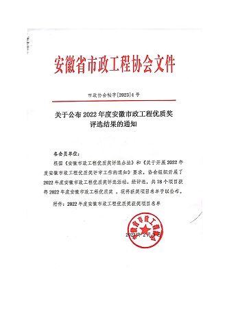 根据《安徽市政工程优质奖评选办法》和《关于开展2022年度安徽市政工程优质奖评审工作的通知》要求,安徽省市政工程协会组织开展了2022年度安徽市政工程优质奖评选活动。米兰网页版·官方端入口-米兰online(中国)