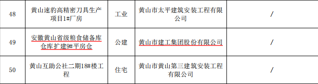 近日,黄山市住房和城乡建设局公布了2025年度黄山市建设工程“迎客松杯”奖获奖名单。黄山建工集团承建的安徽黄山省级粮食储备库仓库扩建9#平房仓项目、黄山区2019-15地块6#楼项目及黄山横江湾凯悦嘉轩酒店项目成功斩获三项“迎客松杯”奖。